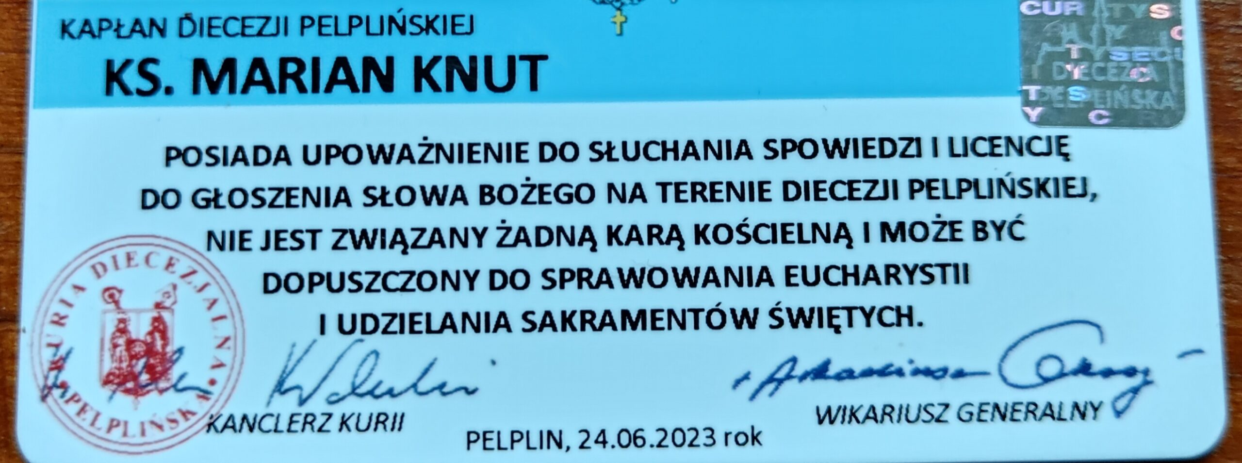 IV. Jak widać z kontekstu takiej radosnej twórczości, musiało komuś mocno na tym zależeć, aby właśnie taki głośny przekaz poszedł w świat, informujący o usunięciu i degradacji. Sugerując jednocześnie popadnięcie w kary i konieczność zdyscyplinowania konfliktowego kapłana przez przełożonych. Jednak jest to kolejna wyimaginowana i niczym nie potwierdzona teoria, redaktora nie potrafiącego podpisać się własnym imieniem i nazwiskiem, pod tworzonymi przez siebie treściami. Rozmija się ona zupełnie z rzeczywistością zawartą w legitymacji, która stwierdza brak kar związanych z zaistniałą sytuacja. Szczegóły na zdjęciu poniżej…